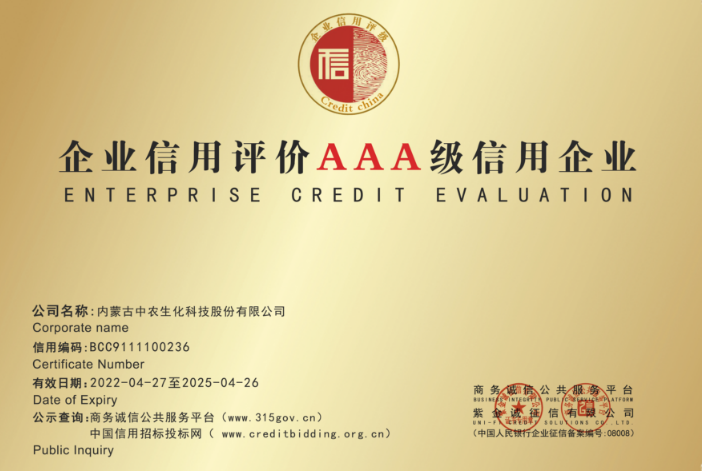 企业信用等级AAA证书